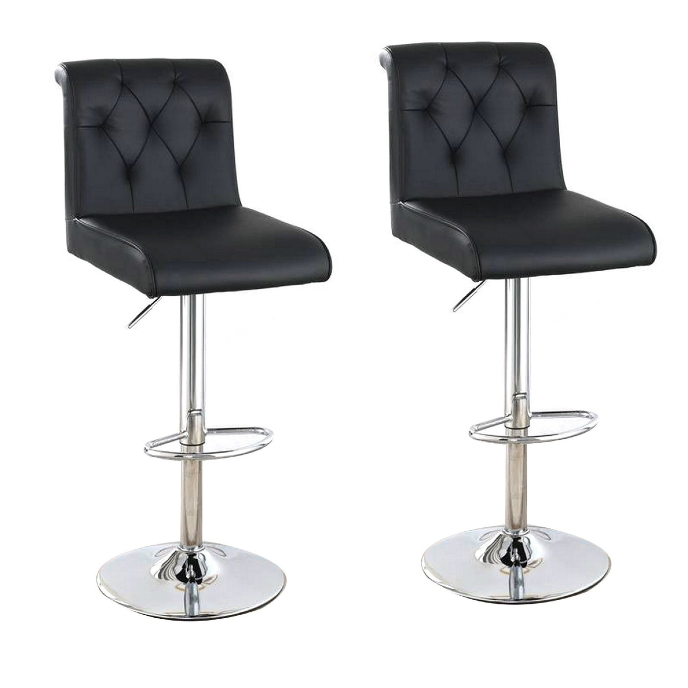 Adjustable Barstool With Rolled Button Tufted Back, Set Of 2, Black