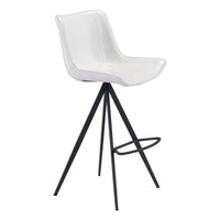 Handsome With The Right Amount Of Rugged, This Bar Chair Is The Perfect Compliment To Your Kitchen Island Or Bar Area. Its Scooped Seat In White Faux Leather Rests On Slim Splayed Legs In Black With An Attached Footrest. Stitched Detail Gives It Texture And Dimension. Protective Plastic Feet Keep Your Floors Scratch-Free.
