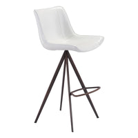 Handsome With The Right Amount Of Rugged, This Bar Chair Is The Perfect Compliment To Your Kitchen Island Or Bar Area. Its Scooped Seat In White Faux Leather Rests On Slim Splayed Legs In Brown With An Attached Footrest. Stitched Detail Gives It Texture And Dimension. Protective Plastic Feet Keep Your Floors Scratch-Free.