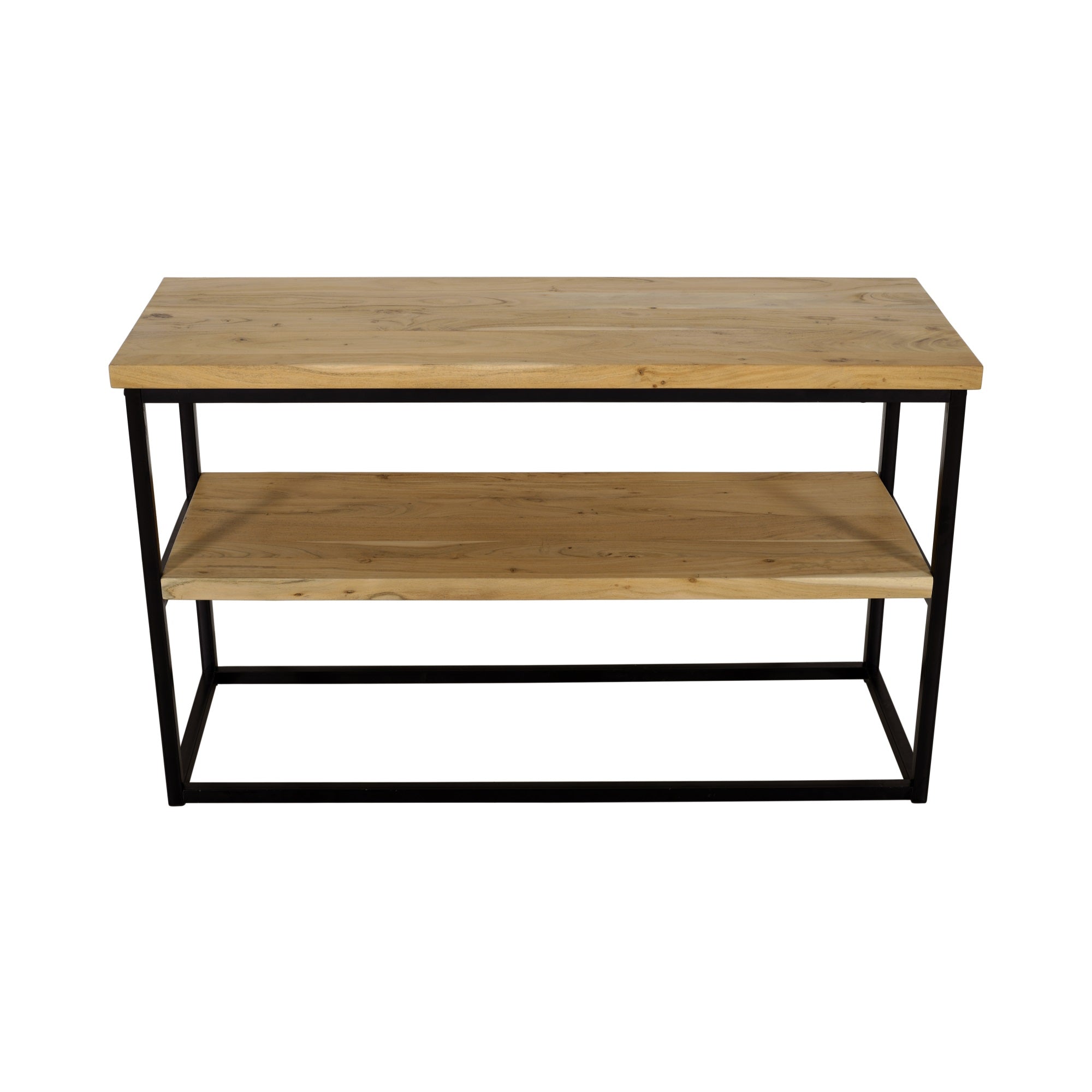 The Ames Solid Wood Modern 50' Sofa Table Perfectly Balances Modern Aesthetics With The Natural Beauty Of Acacia Wood. Its Minimalist Design Features A Sleek Black Powder-Coated Metal Frame, Which Complements The Warm, Natural Finish Of The Solid Wood Top. Two Full-Length Shelves Provide Ample Space For Displaying Decor, Storing Books, Or Organizing Essentials. Measuring 50' Wide, This Table Is Ideal For Those Who Appreciate Clean Lines And Contemporary Style. The Open-Frame Design Adds A Sense Of Lightness To Your Space, Making It A Versatile Addition To A Living Room, Hallway, Or Office. The Unique Grain Patterns Of The Solid Acacia Wood Ensure That Each Piece Is One Of A Kind, Offering A Subtle Yet Sophisticated Look That Enhances Any Modern Home.