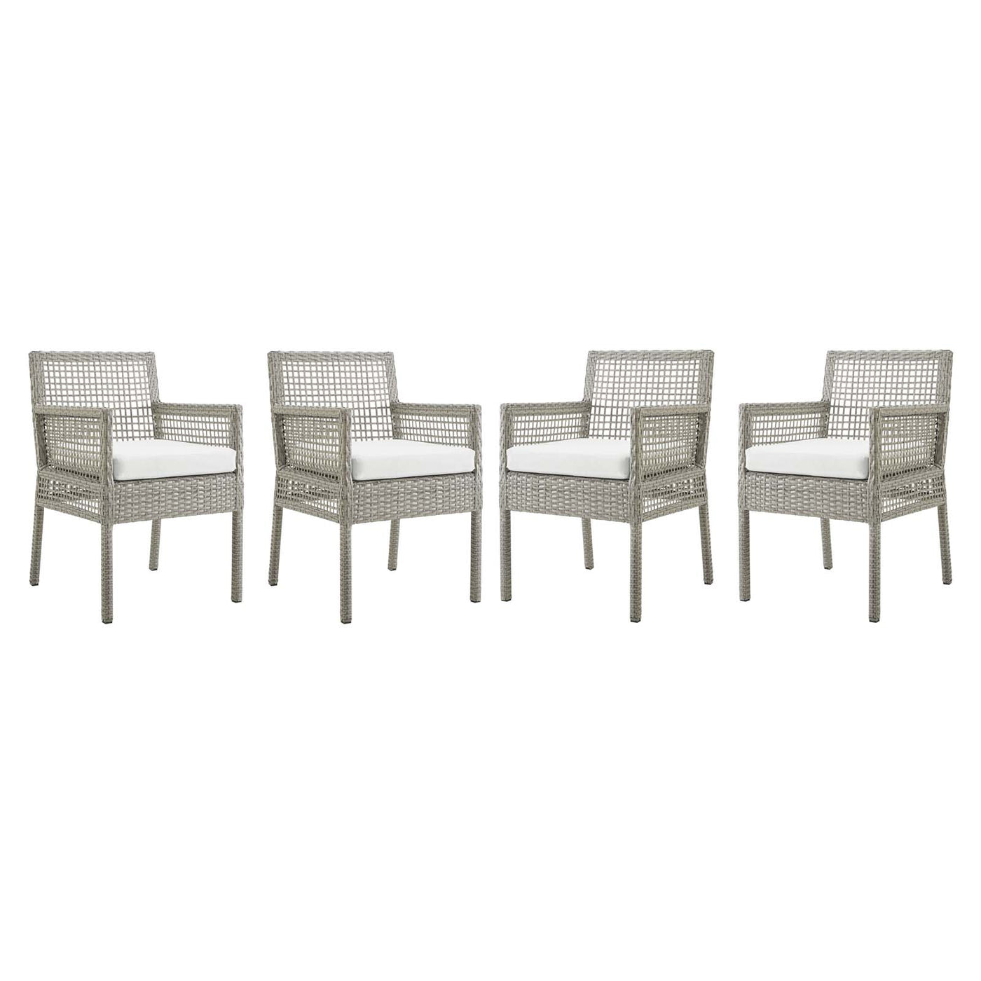 Aura Dining Armchair Outdoor Patio Wicker Rattan Set Of 4 - Gray White