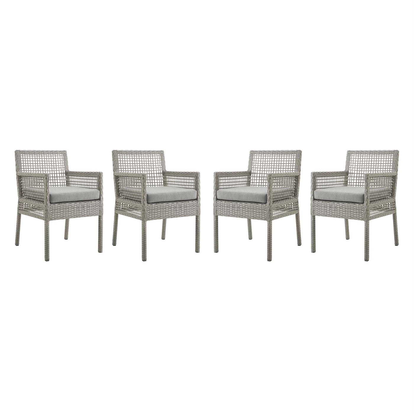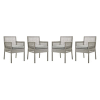 Aura Outdoor Patio Dining Arm Chair Set Of 4 - Gray Wicker Rattan, Aluminum Frame, All-Weather Cushion, Non-Marking Foot Caps