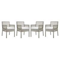 Enhance Your Outdoor Space With The Aura Outdoor Patio Dining Chair. This Chair Features A Stylish Synthetic Gray-On-Gray Wicker Rattan Weave And A Durable Powder-Coated Aluminum Frame. It Is Designed To Adapt To Any Occasion, Making It Perfect For Gatherings And Creating Lasting Memories. The Chair Also Includes A Machine Washable And Fade Resistant All-Weather Fabric Cushion For Added Comfort. With Non-Marking Foot Caps, This Reliable Piece Of Outdoor Furniture Offers Spacious Seating And Is Suitable For Your Patio, Backyard, Or Poolside Area. The Set Includes Four Aura Dining Armchairs.