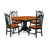 Avdo5-Bch-W 5-Piece Dining Table Set, Ergode, Mid-Century Design, High-Quality Asian Wood, Cherry & Black, 4 Chairs & 1 Dining Table, Easy Assembly, Dimensions: Chairs - L: 22, W: 18, H: 36; Table - L: 60/42, W: 42, H: 30