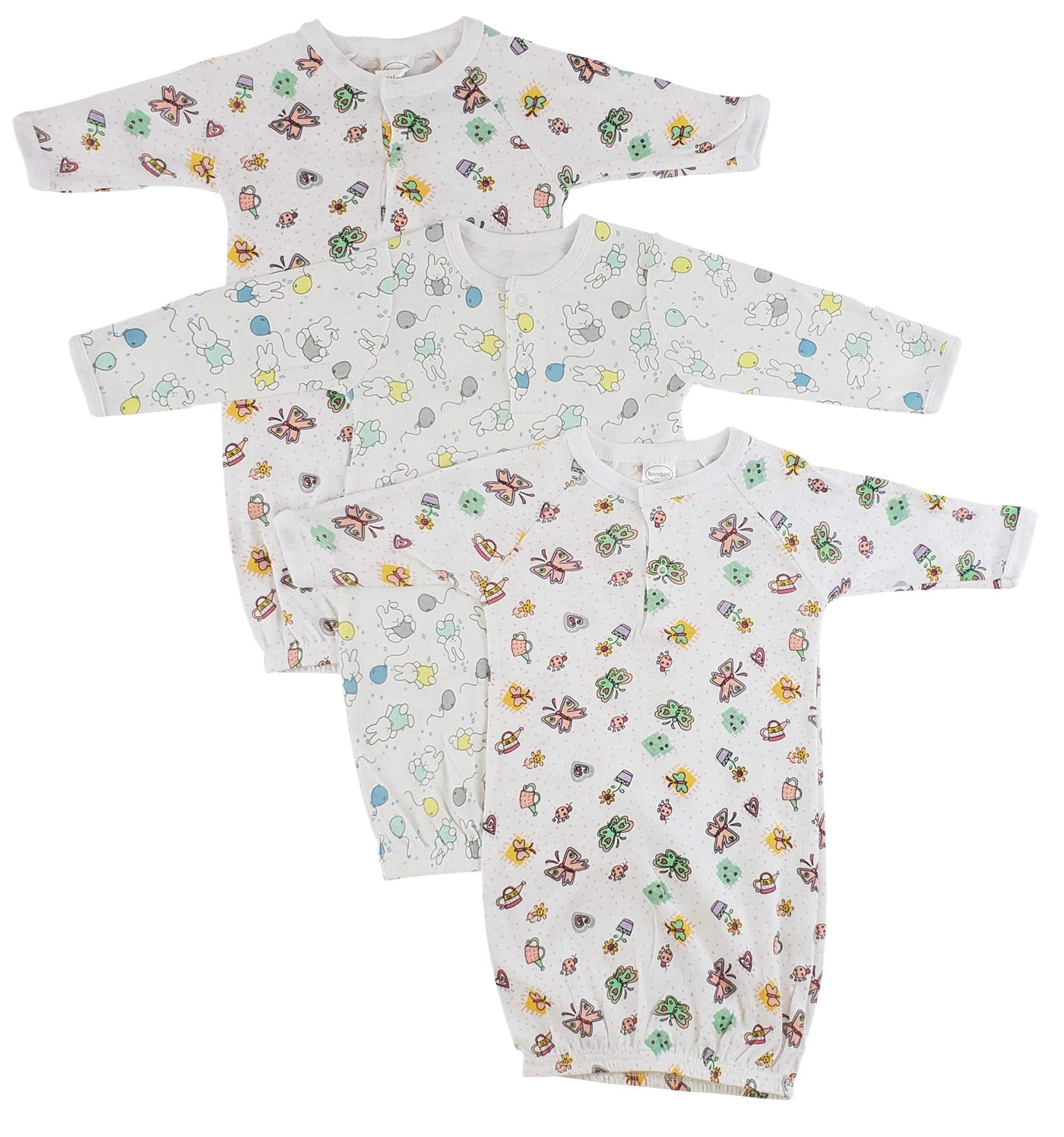 Bambini Girls Print Infant Gowns - 3 Pack - Newborn