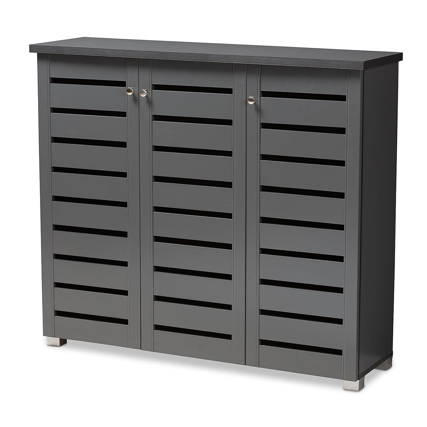 Baxton Studio Adalwin Modern And Contemporary Dark Gray 3-Door Wooden Entryway Shoe Storage Cabinet