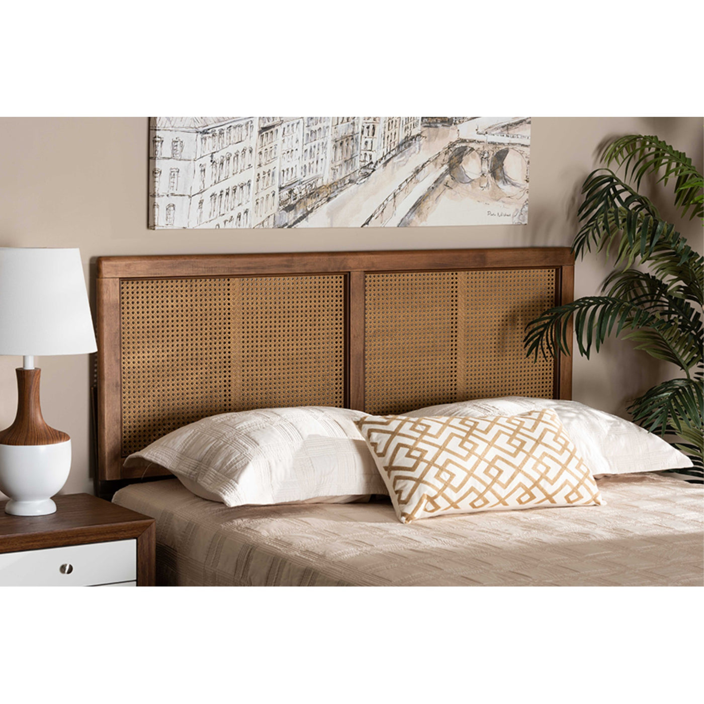 Baxton Studio Gilbert Mid-Century Modern Ash Walnut Finished Wood And Synthetic Rattan Full Size Headboard
