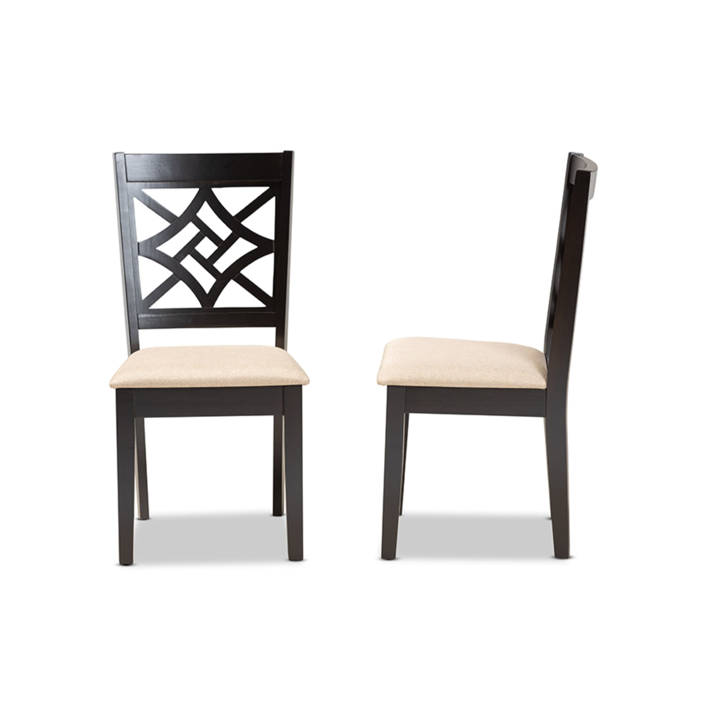 Baxton Studio Nicolette Modern And Contemporary Sand Fabric Upholstered And Dark Brown Finished Wood 2-Piece Dining Chair Set