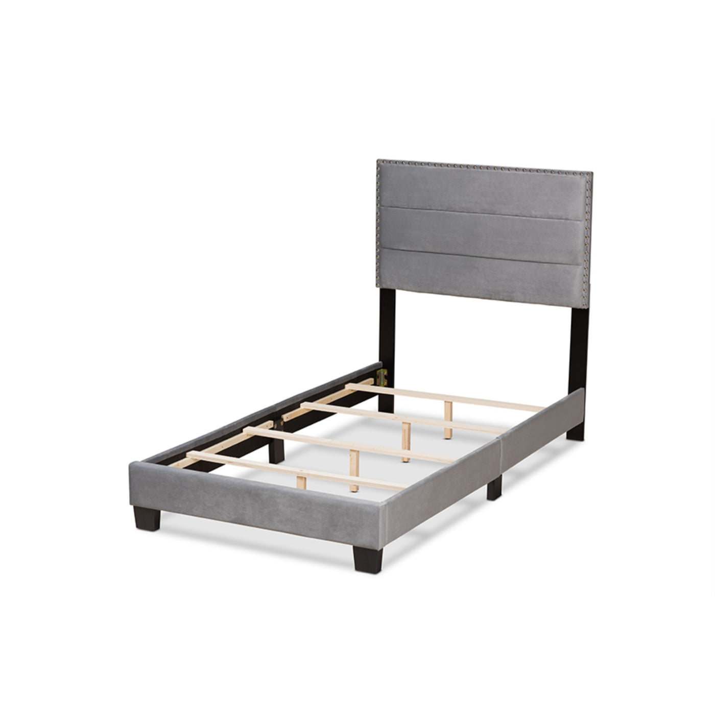 Baxton Studio Tamira Modern And Contemporary Glam Grey Velvet Fabric Upholstered Twin Size Panel Bed