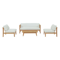 Bayport Teak Outdoor Collection - Relaxation & Tranquility | Durable Teak Wood | All-Weather White Cushions | Assembly Required | Includes Coffee Table, Loveseat, & Armless Chairs