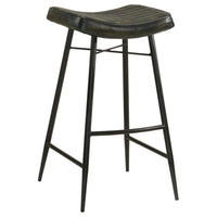 Inject A Heavy Dose Of Casual Character To Your Kitchen Or Bar With The Rich Antiqued Leather Upholstery Featured On A Classic Backless Stool. Its Gently Curved Seat Cradles You In Comfort, With Channel Tufting That Adds Texture And Compelling Style. A Durable Metal Base Delivers Stability For All Your Seating Needs, From A Quick Cup Of Coffee In The Morning To A Leisurely Dinner Catching Up With Your Favorite Person. Flared Legs Define Its Silhouette, With An X-Cross Brace Just Under The Seat Adding Visual Interest And Depth. Gently Curved Footrests And Built Into The Base, Perfect For Support And Style For The Whole Family.