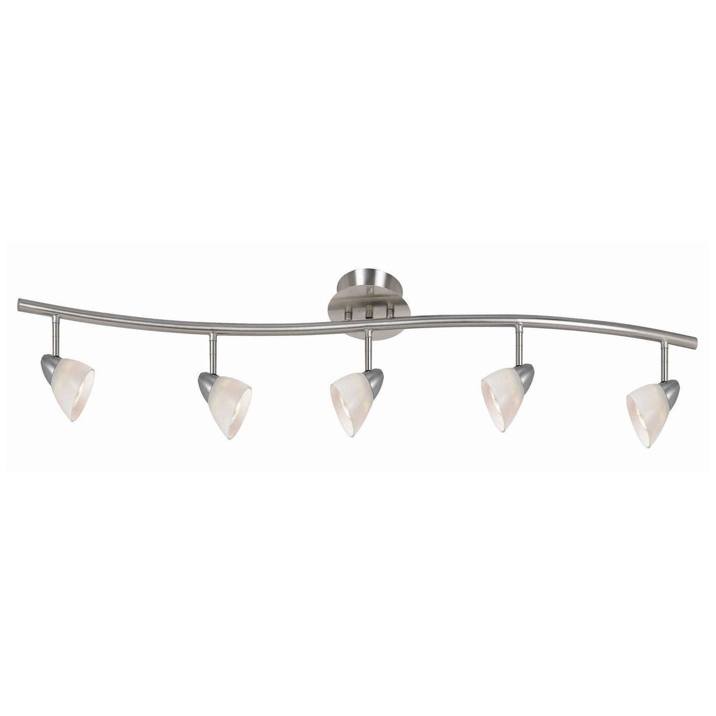 Benjara 5 Light 120V Metal Track Light Fixture With Glass Shade, White And Silver