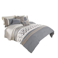 Benjara 7 Piece King Polyester Comforter Set With Geometric Design, Blue And Gray
