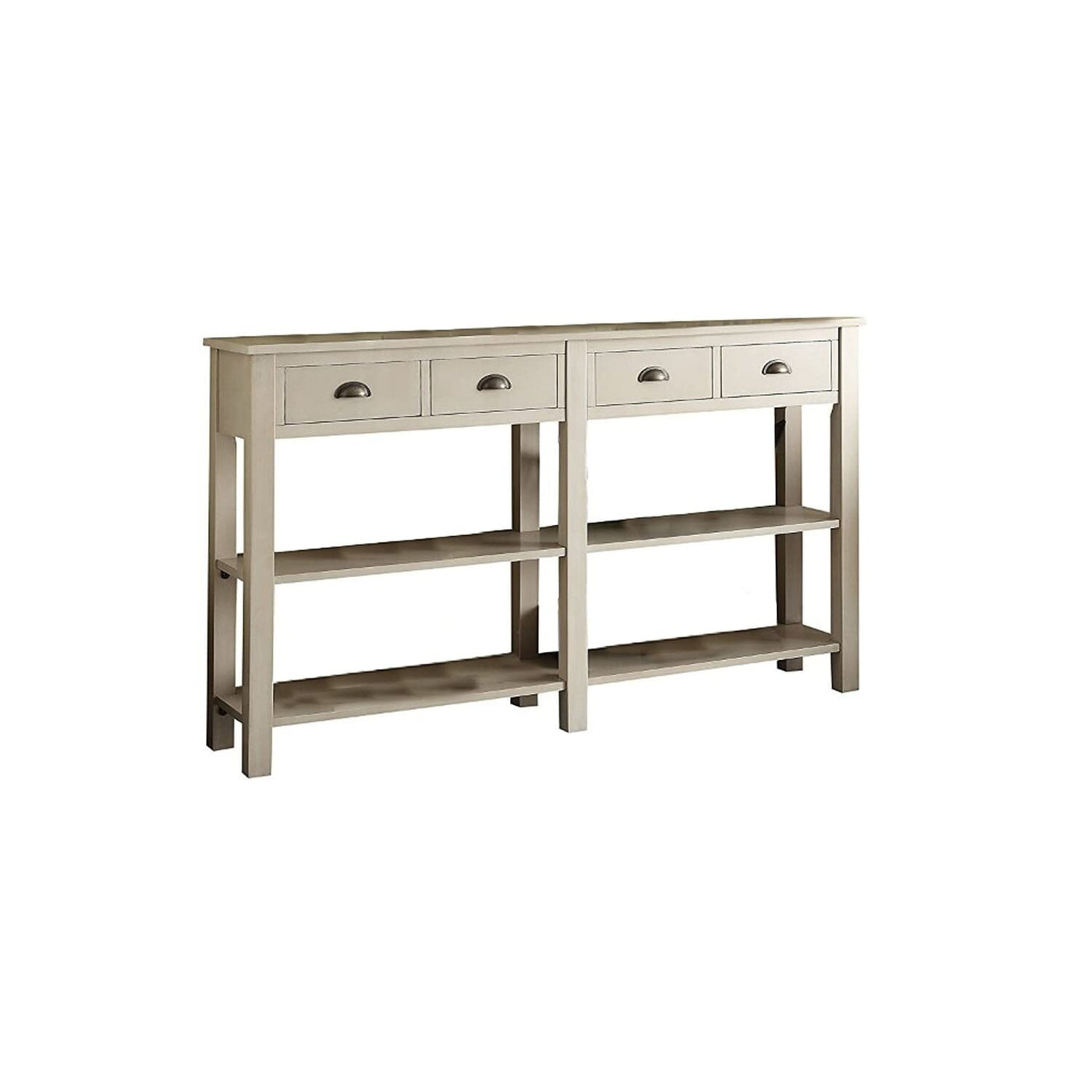 Descriptiondesigned To Add Style To Any Room, This Console Table Can Be Used Anywhere In Your House Showcasing A Wide, Yet Narrow Profile, The Table Is Made From Durable Wood And Is Finished In Cream That Blends Well With A Variety Of Design Themes Featuring Four Drawers With Cup-Style Hardware And Two Lower Open Shelves, This Console Table Provides Ample Of Display And Storage Space Add This Table Behind Your Sofa To Display Flowers, Decorative Pieces, Pictures, And Even Books In Your Living Room Or Place It Right By The Front Door So You Can Handily Drop Your Keys At The End Of A Long Day