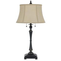 Benjara Bm223689 Metal Body Table Lamp With Fabric Tapered Bell Shade, Beige & Black