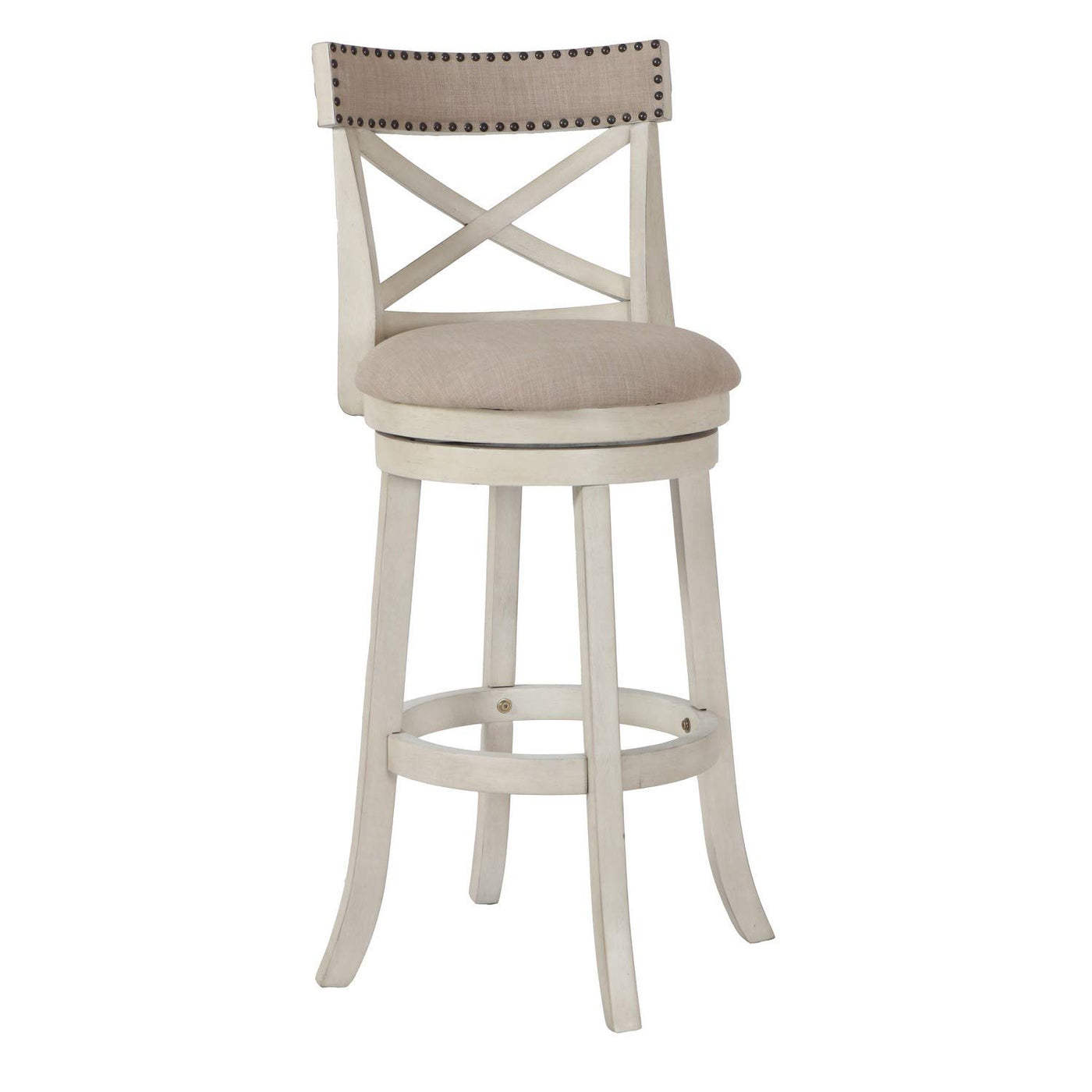 Classic And Sturdy The Barstool Has A Timeless Look, Constructed With A Solid Wood It Has Classic Features Curved X Shaped Backrest With Nailhead Trim Accents, A Super Comfortable Padded Seat With A Swivel Base The Flared Legs With A Circular Footrest To Rotate Effortlessly A Great Way To Add An Update To Your Traditional Decor Style