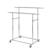 Benjara Dual Bar Tubular Metal Frame Garment Rack With Casters, Chrome