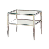 Benjara Glass Top Square End Table With Open Shelf And Chrome Frame, Silver