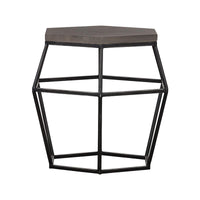 Benjara Hexagonal Concrete End Table With Metal Base, Gray And Black