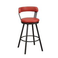 Benjara Leatherette Pub Chair With Curved Design Open Backrest, Set Of 2, Red