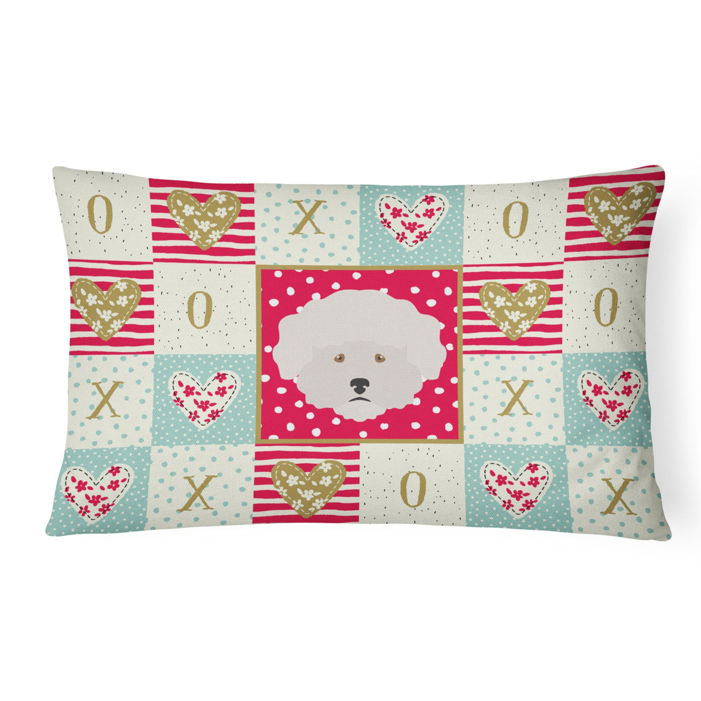 213-194030274989 Bichon Fris Love Canvas Fabric Decorative Pillow By Carolines Treasures, Inc, Made In Usa.Add Color To Your Solid Color Outdoor Patio Furniture Or Outdoor Seating Area With Our Full Color Artwork Outdoor Pillows. Each Pillow Measures Approximately 12 Inches By 16 Inches And Is Measured From Corner Of Pillow. 100% Polyester Fabric Canvas Pillow Sham With Pillow Form. This Pillow Is Made From Caroline'S Treasures New Canvas Type Material And Can Be Used Indoors Or Outdoors. This Fabric Is Coated On The Back Of The Canvas To Make It Water Resistant. These Pillows Are Also Mildew Resistant, Stain Resistant, Fade Resistant And Machine Washable. These Pillows Are All Made By Hand And May Vary Slightly In Size.
