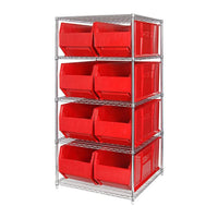 Bin Wire Shelving System, 48W X 36D X 74H, 800 Lbs Load Capacity Per Shelf, Includes: (5) Shelves And (8) Qus997 Red Bins, Chrom