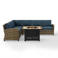 Bradenton 5Pc Sectional Set With Fire Table - All-Weather Resin Wicker, Solution-Dyed Polyester Cushions. Ultimate Luxury For Outdoor Coziness.
