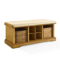 Organize Your Entryway With The Sophisticated Brennan Storage Bench. This Bench Features Four Small Compartments For Shoe Storage And Other Small Items. Two Larger Cubbies With Wicker Baskets Offer Space To Tuck Away Items You Want Out Of Sight. The Included Cushion Adds A Bit Of Comfort When You Sit Down To Slip Your Shoes Off At The End Of The Day. This Entryway Shoe Bench Adds A Lovely Touch Of Class To Your Foyer Or Mudroom.