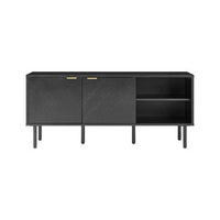 The Brody Record Storage Sideboard Is What Happens When A Standard Buffet Cabinet Gets A Glow-Up. This Modern Credenza Boasts A Beautiful Chevron-Patterned Oak Wood Grain Accentuated With Contrasting Antique Brass Handles. Designed For Music Lovers, The Top Has Ample Space For Your Favorite Record Player, While The Included Dividers Allow You To Sort And Categorize Your Precious Vinyl. Adjustable Storage Shelves And Cable Management Holes Create Dedicated Space For An Amplifier Or Receiver. Whether Placed In Your Living Room, Home Office, Or Dining Area, This Stylish Sideboard Is Ready To Take Center Stage.