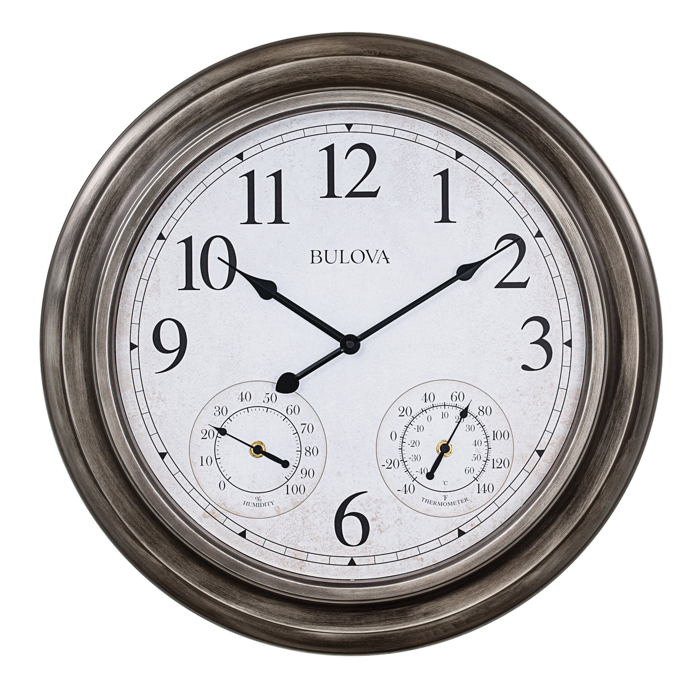 New C4125 Block Island Indoor/Outdoor Convenience. Two-Step Molded Case In Aged Silver-Tone Finish Features A Thermometer, With Fahrenheit And Celsius Scales, And Hygrometer To Measure Humidity. The Movement Is Covered And Protected From The Elements. Aged Parchment Styled Dial With Large Bold Numbers Makes This Easy To See From A Distance. Protective Glass Lens. Requires (1) Aa Battery, Not Included. Dia.: 20 D: 2 , Diameter 50.8 Cm Depth 6.3 Cm