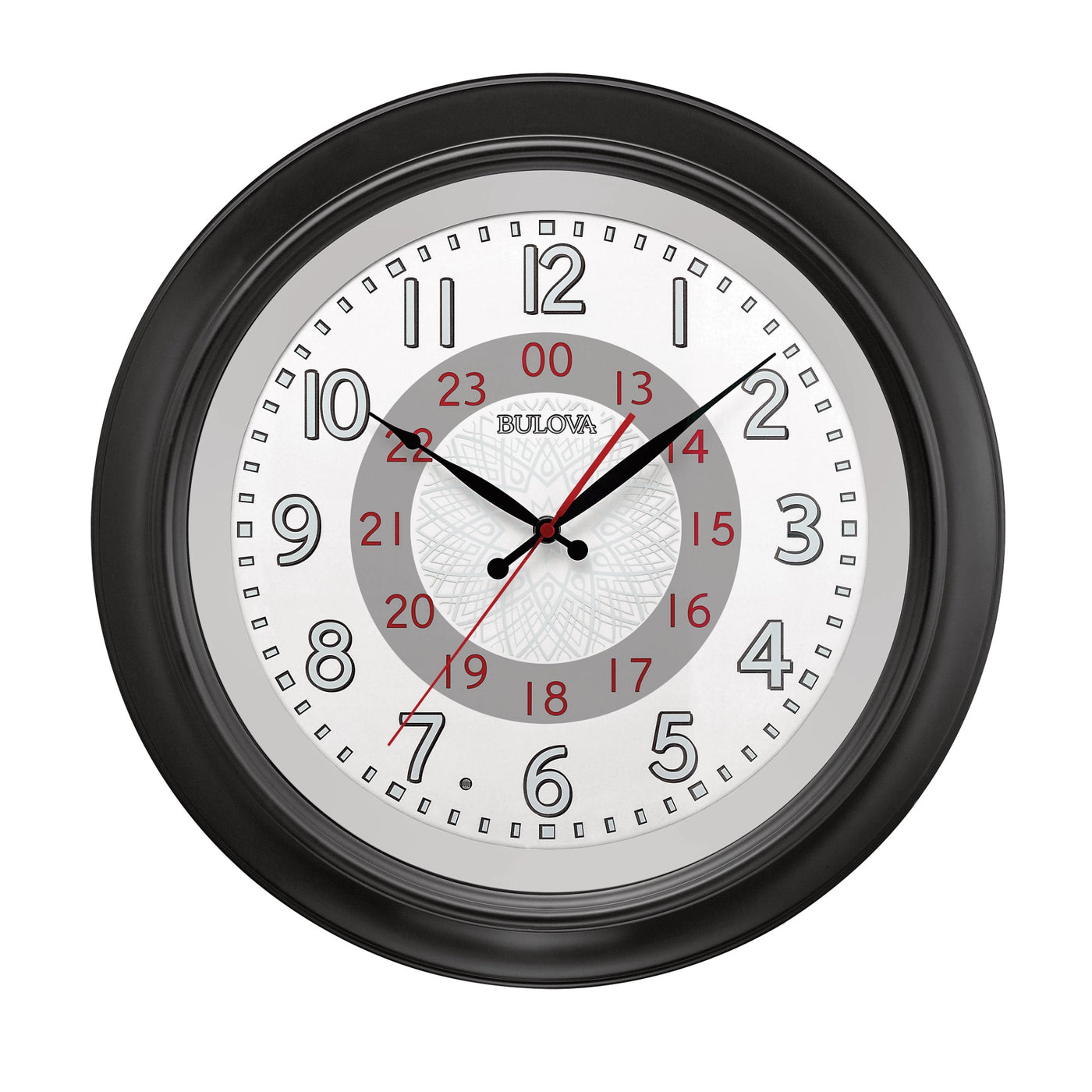 Oversize Molded Commercial Case Is Finished In Black With A Contrasting Matte Silver Inner Bezel Ring, The Large Easily Viewable Numbers And Minute Track Are Printed In Reflective Ink So That In Low Light Conditions The Lighted 24-Hour Timetrack Is Easily Readable. The Red Silent Sweep Seconds Hand (No Ticking) Effortlessly Marks Of The Passing Seconds. A Glass Lens Protects The Dial. This Is A Perfect Clock For Any Critical Response, Computer Room Or Any Location That A Clear Notation Of The Time Is Desired.The Lighted Dial Automatically Comes On In Low Light Conditions And Shuts Off When Not Needed. There Are 3 Settings; Dusk To Dawn, 5-Hour Timer Or Off, This Allows The Ability To Save Battery Power If Needed. Uses (1) Aa And (4) C Batteries (To Power The Led Lights), Not Included.