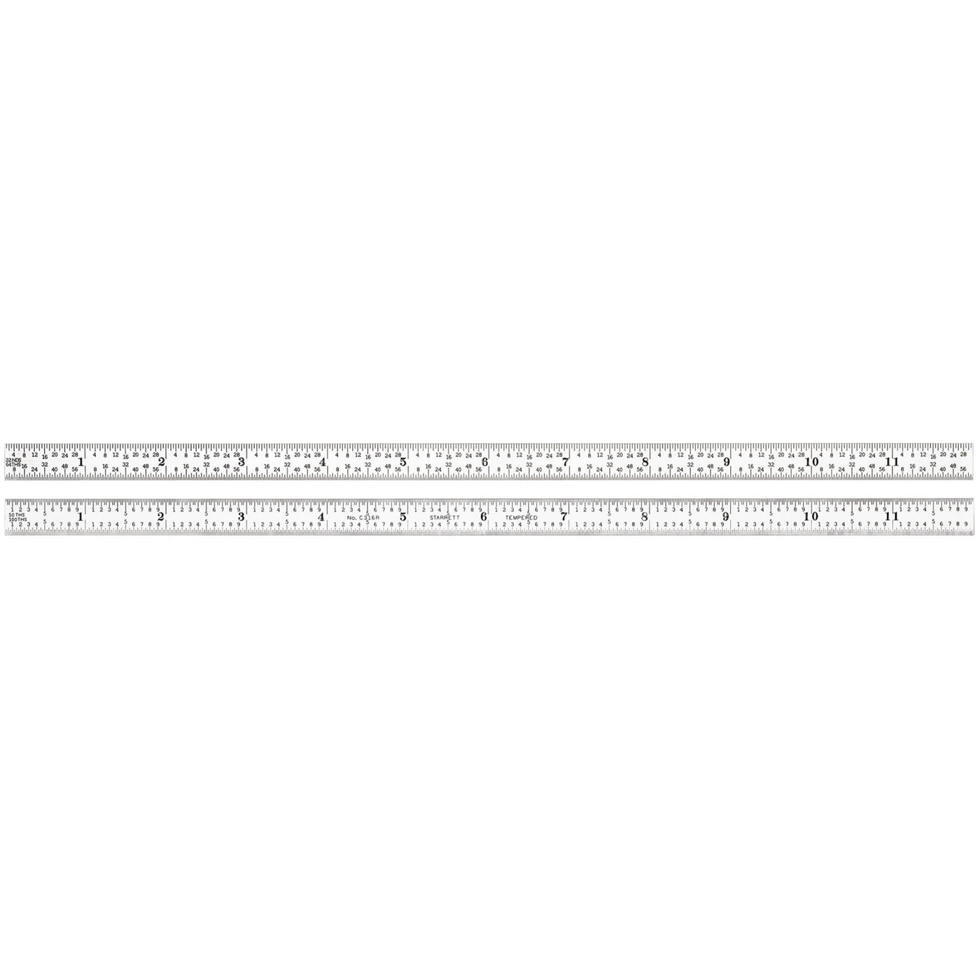 C316R-12 Full Flexible Steel Rule With Inch Graduations, 16R Style Graduations, 12 Length, 1/2 Width, 1/64 Thickness