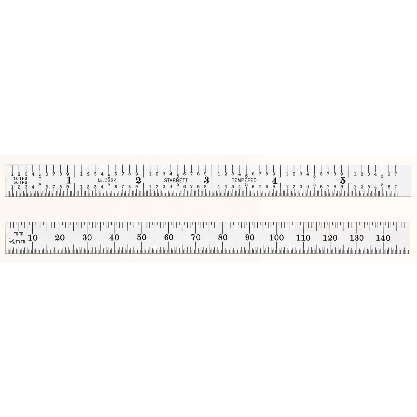 The Starrett 150Mm - 5-3/4 Full-Flexible Steel Rule With Millimeter And Inch Graduation Features A Satin Chrome Finish. Graduations Include Mm And 1/2Mm On One Side; Quick-Reading 10Ths (.10) And Aircraft Quick-Reading 50Ths (.02) On Reverse. 150Mm (5 3/4), No. 34 Grad, Full-Flexible Reverse.