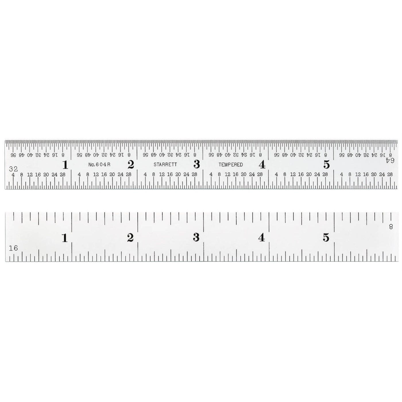 C604R-6 6 Spring-Tempered Steel Rule With Inch Graduations, Graduations At 8Ths, 16Ths, Quick-Reading 32Nds, 64Ths