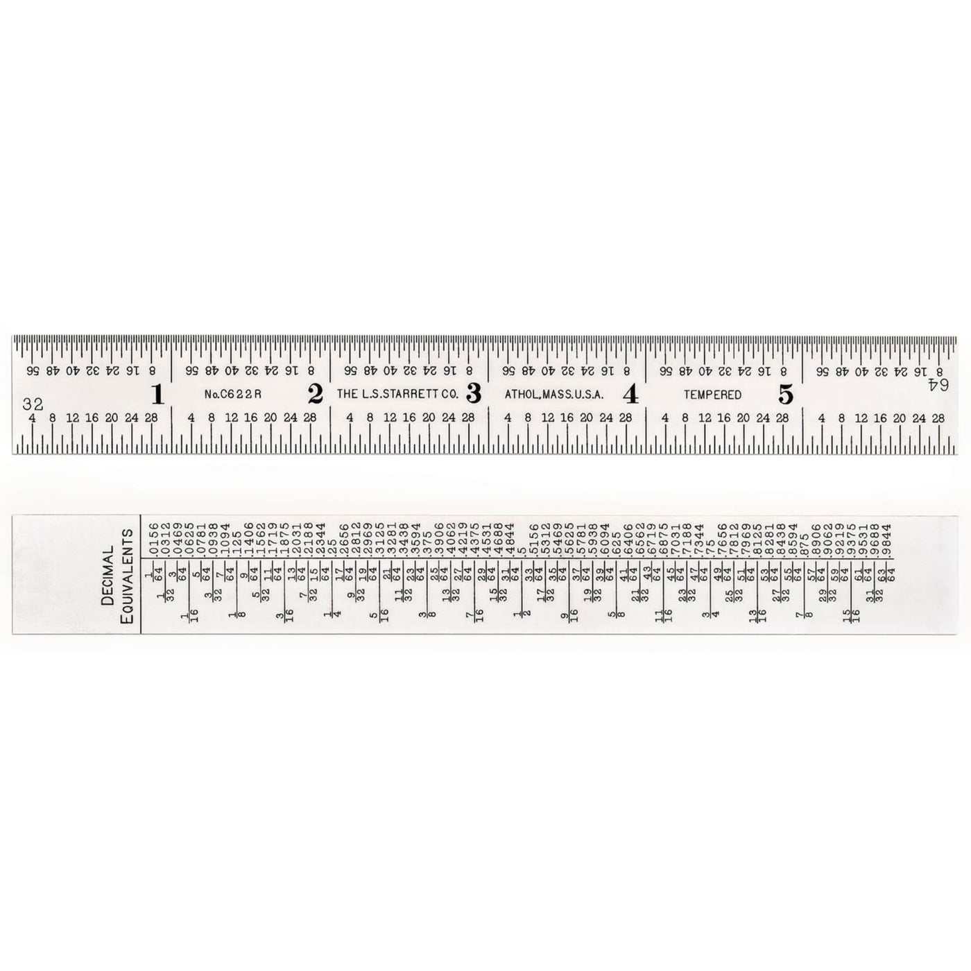 The Starrett 6 Steel Rule With Decimal Equivalent Features A Satin Chrome Finish. Graduations At Quick-Reading 32Nds And 64Ths. 6, 10R Grad With Decimal Equivalents 64Ths.