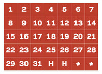 Calendar Dates Accessory Magnets, White On Red