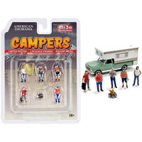 Campers 6 Piece Diecast Set (5 Figurines And 1 Accessory) For 1/64 Scale Models By American Diorama 76489, Ad76489