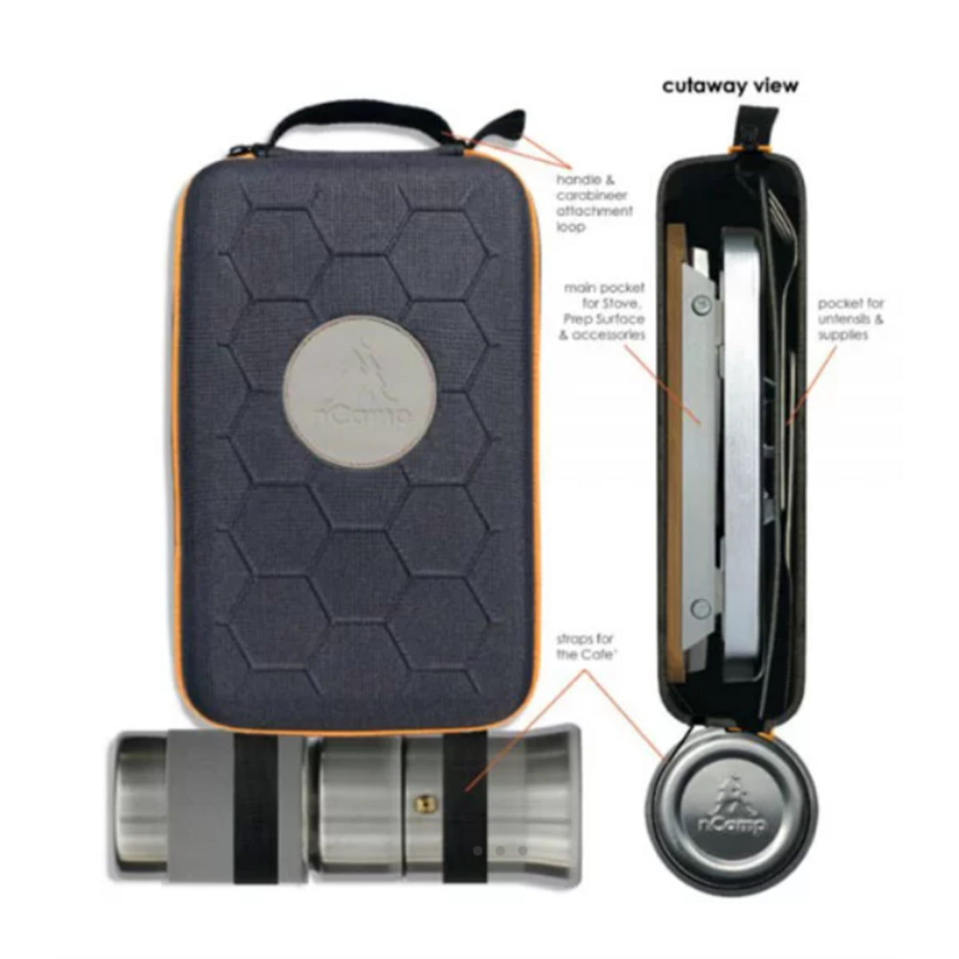 644-867892000361 Carry Case(For Ncamp Stove, Prep Surface, Caf, And More) Manufactured By Ncamp. The Durable Ncamp Carry Case Is Designed To Fit Our Multi-Fuel Stove, Prep Surface, And Other Accessories Or Utensils. It Also Includes Straps To Attach The Ncamp Caf Or Insulated Water Bottle. The Carry Case Includes A Handle For Carrying And A Loop To Attach A Carabiner. It Has A Zipper Pocket For Small Items, In Addition To A Large Compartment For The Stove And Prep Surface. It Is Made Of Molded Nylon/Eva Foam, Making It Flexible And Durable. Designed In The Usa.