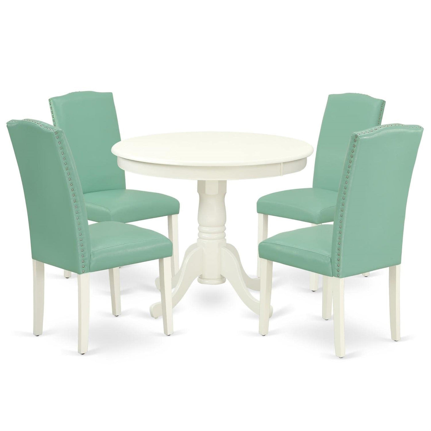 Casafoyer 5 Piece Dining Room Table Set Includes A Round Kitchen Table With Pedestal And 4 Pond Faux Leather Parsons Dining Chairs