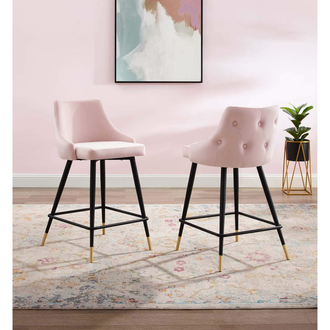 Revitalize Dining Room Or Kitchen Decor With The Adorn Performance Velvet Counter Stool. Classic Button Tufting Along The Stool'S Exterior And Graceful Sweeping Lines Blend Seamlessly Into The Lush Comfort Of This Counter Stool. Covered With Soft Stain-Resistant Performance Velvet, This Upholstered Counter Stool Offers A Comfortable Place To Dine With A Dense Foam Padded Seat. Sitting On Four Black Tapered Legs With Gold Foot Sleeves, Adorn'S Vintage Modern Style And Glam Deco Charm Makes This Counter Stool Ideally Suited For A Counter-Height Bar Table Or Kitchen Island, Or Even As An Accompaniment To A Drafting Desk In The Home Office. This Modern Dining Counter Stool Supports Up To 300 Lbs. And Is Complete With Non-Marking Foot Caps To Protect Your Flooring. No Assembly Required.Set Includes:Two - Adorn Counter Stool