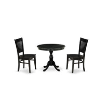 Casafoyer Amva3-Blk-W 3 Piece Dining Table Set For Small Spaces Contains A Round Kitchen Table With Pedestal And 2 Dining Chairs, 36X36 Inch, Black