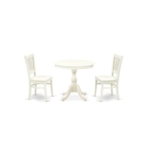 Casafoyer Amva3-Lwh-W 3 Piece Kitchen Table Set For Small Spaces Contains A Round Dining Room Table With Pedestal And 2 Dining Chairs, 36X36 Inch, Linen White