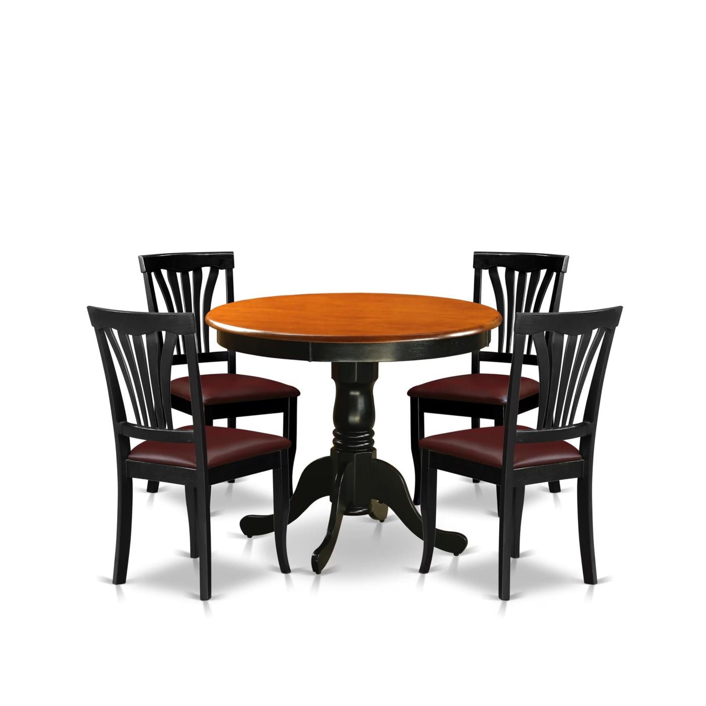 Casafoyer Anav5-Blk-Lc 5 Piece Dinette Set For 4 Includes A Round Kitchen Table With Pedestal And 4 Faux Leather Dining Room Chairs, 36X36 Inch, Black & Cherry