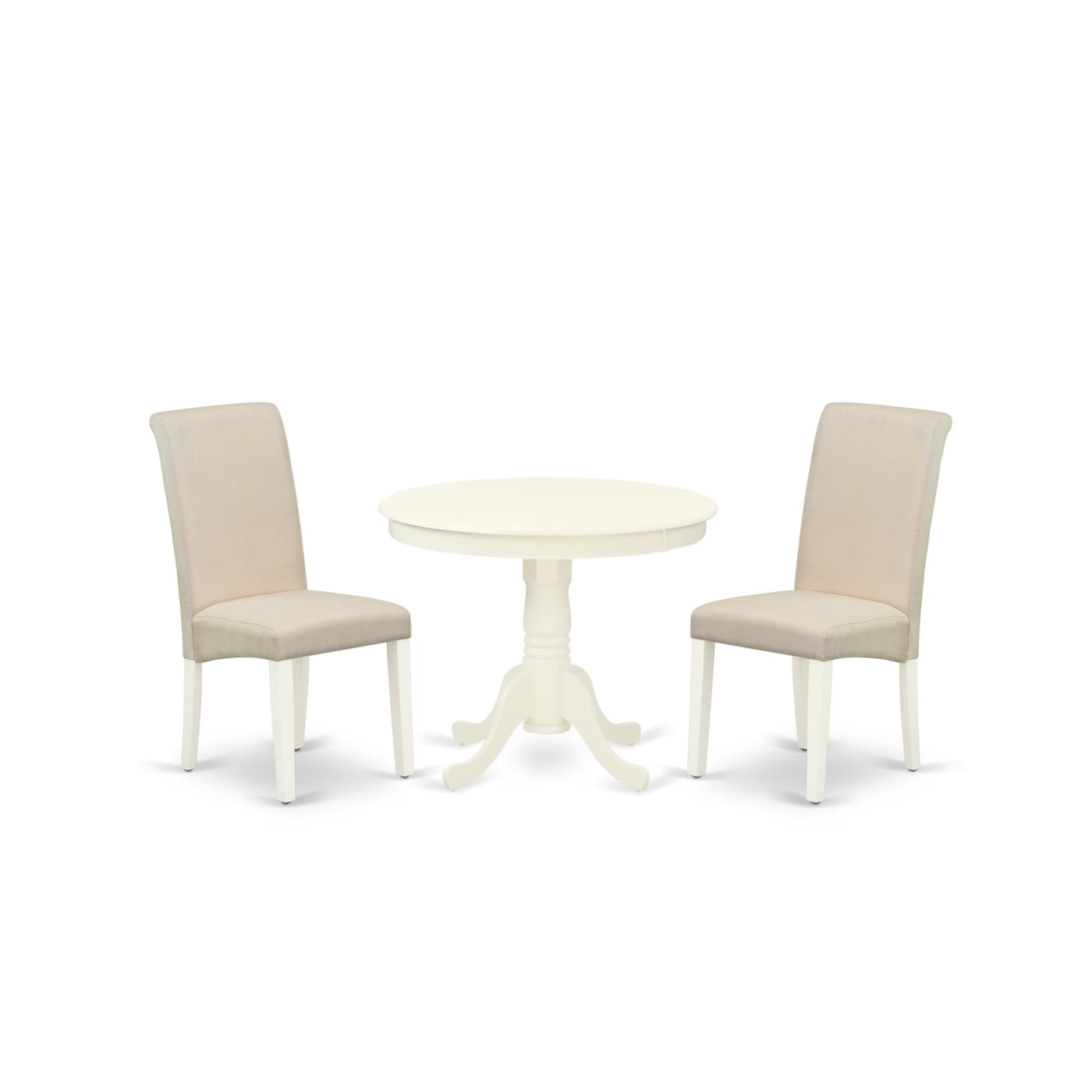 Casafoyer Anba3-Lwh-01 3 Piece Dinette Set For Small Spaces Contains A Round Kitchen Table With Pedestal And 2 Cream Linen Fabric Parson Dining Chairs, 36X36 Inch, Linen White