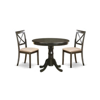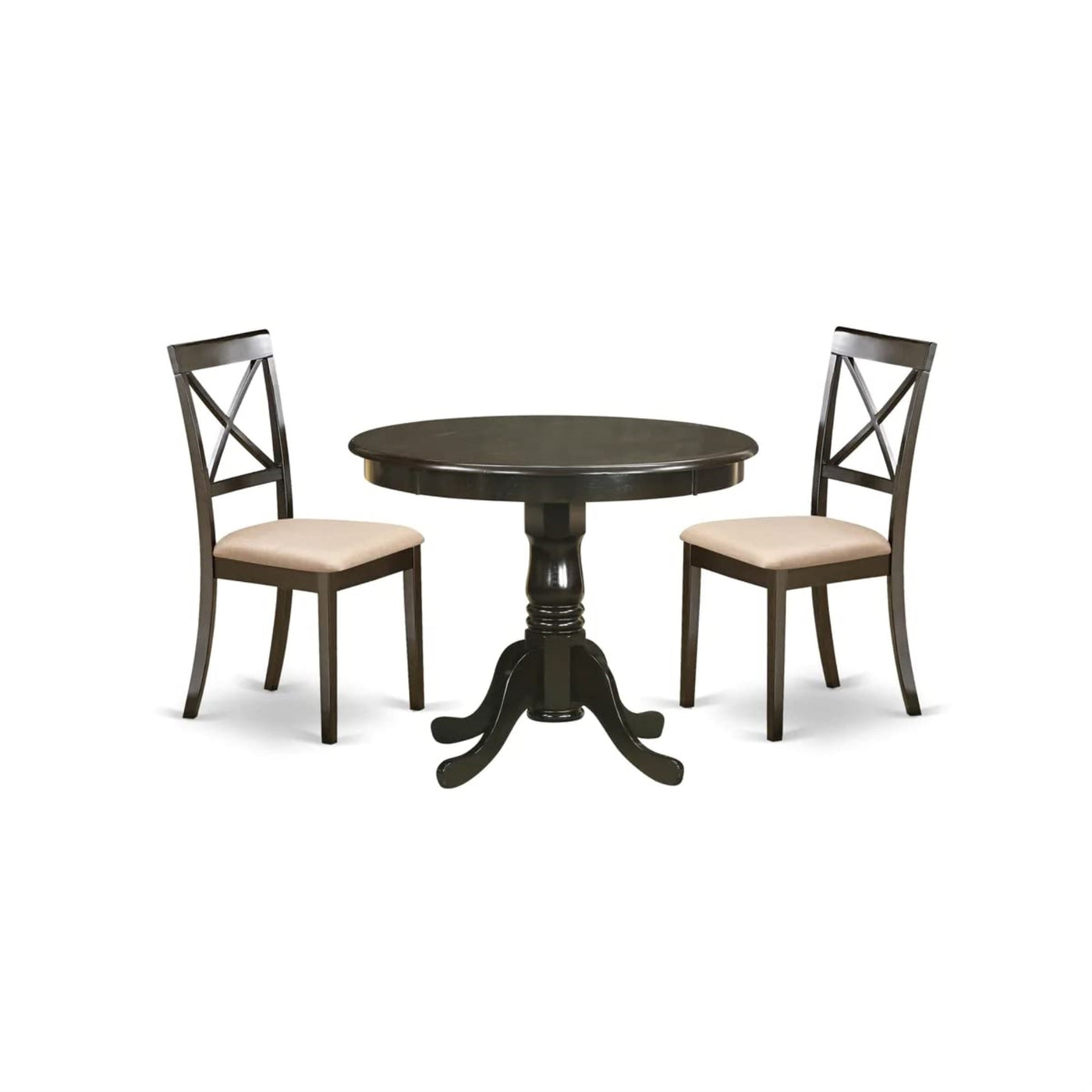 Casafoyer Anbo3-Cap-C 3 Piece Kitchen Table Set For Small Spaces Contains A Round Dining Table With Pedestal And 2 Linen Fabric Dining Room Chairs, 36X36 Inch, Cappuccino