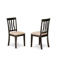 Casafoyer Anc-Cap-C Antique Kitchen Dining Chairs - Linen Fabric Upholstered Wood Chairs, Set Of 2, Cappuccino