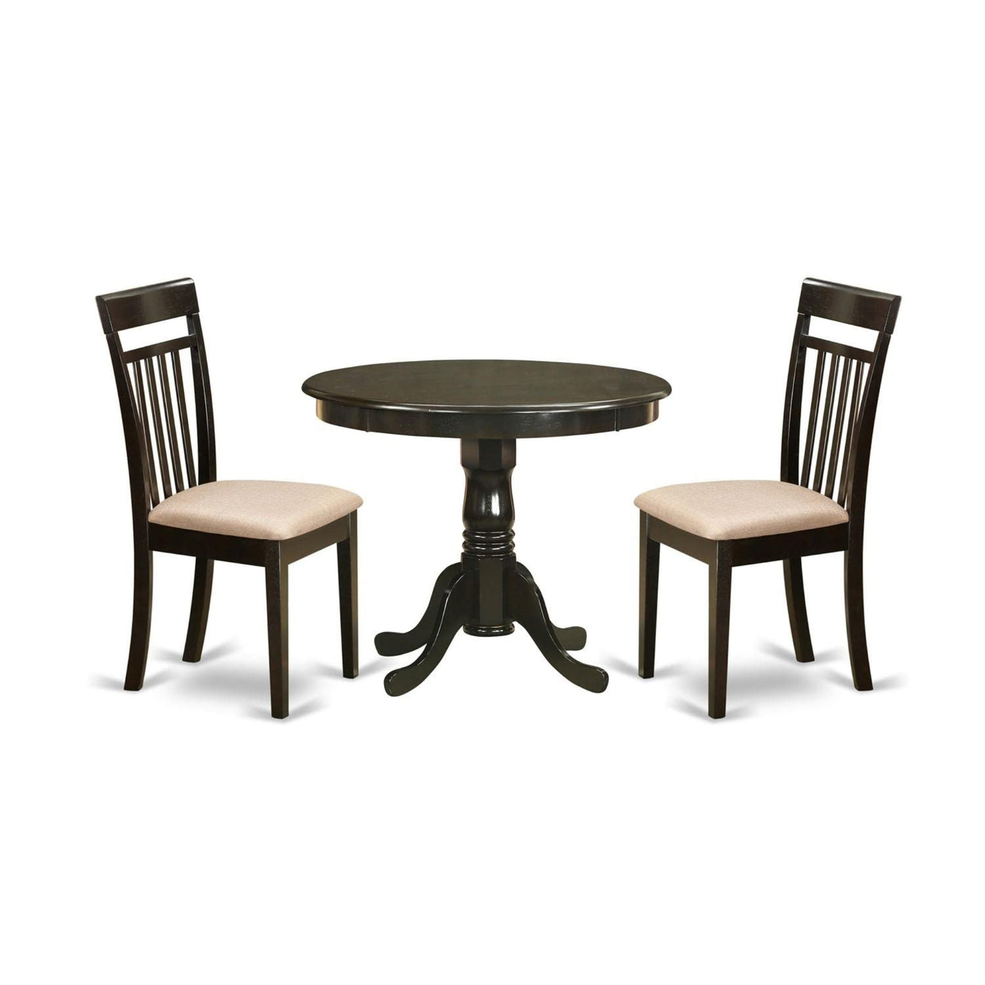 Casafoyer Anca3-Cap-C 3 Piece Kitchen Table Set For Small Spaces Contains A Round Dining Table With Pedestal And 2 Linen Fabric Dining Room Chairs, 36X36 Inch, Cappuccino