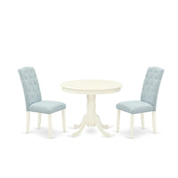 Casafoyer Ance3-Lwh-15 3 Piece Modern Dining Table Set Contains A Round Kitchen Table With Pedestal And 2 Baby Blue Linen Fabric Parsons Dining Chairs, 36X36 Inch, Linen White