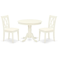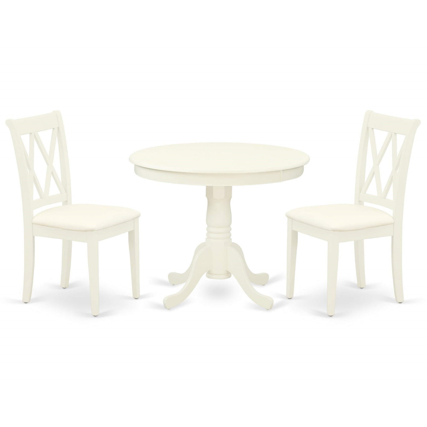 Casafoyer Ancl3-Lwh-C Dining Room Set- 2 Fantastic Dining Room Chairs With Linen Fabric Seat - A Beautiful Round Kitchen Table- - Cherry & Buttermilk Finish