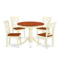 Casafoyer Ancl5-Bmk-W 5 Piece Dining Table Set For 4 Includes A Round Kitchen Table With Pedestal And 4 Dining Room Chairs, 36X36 Inch, Buttermilk & Cherry